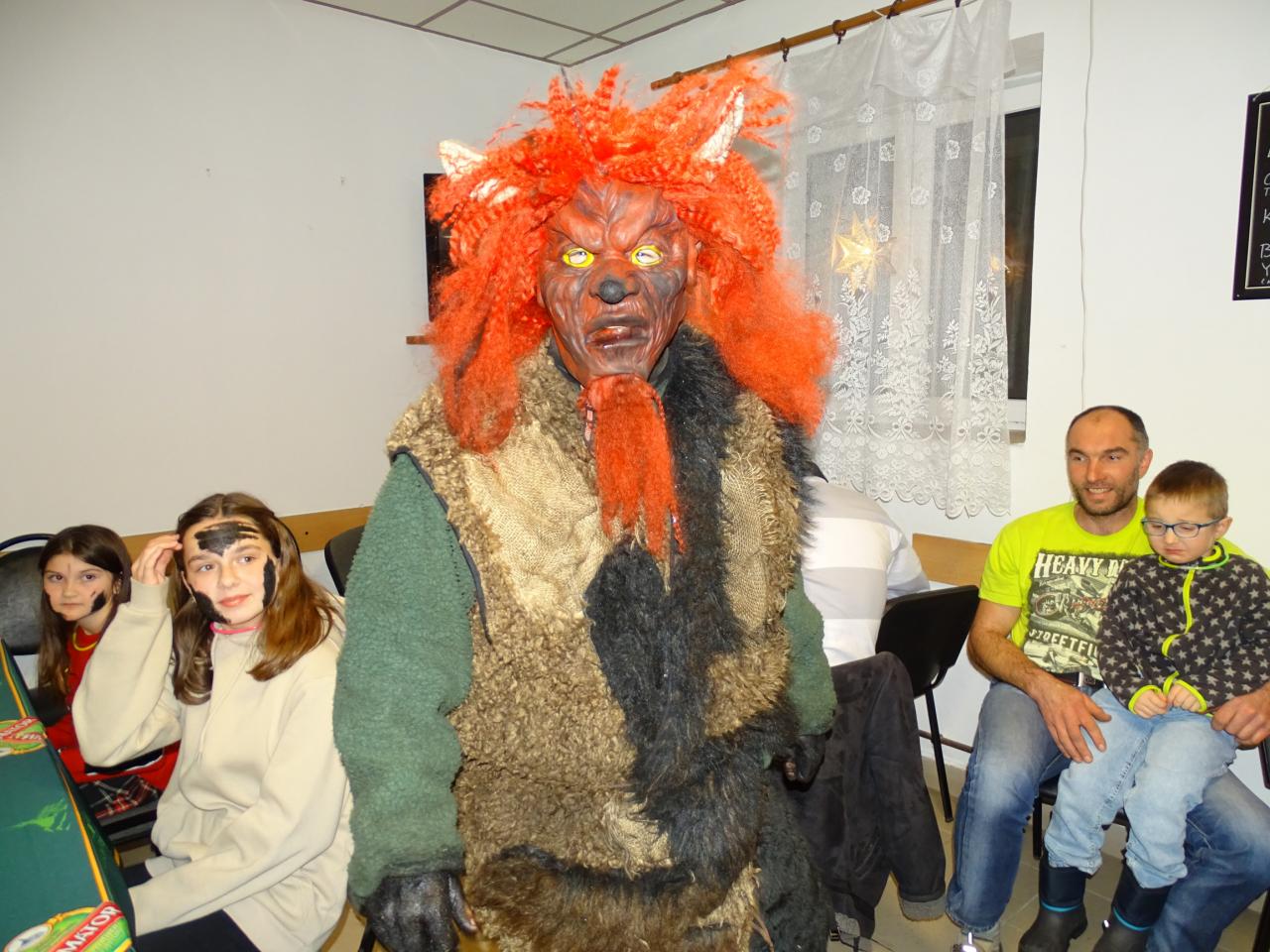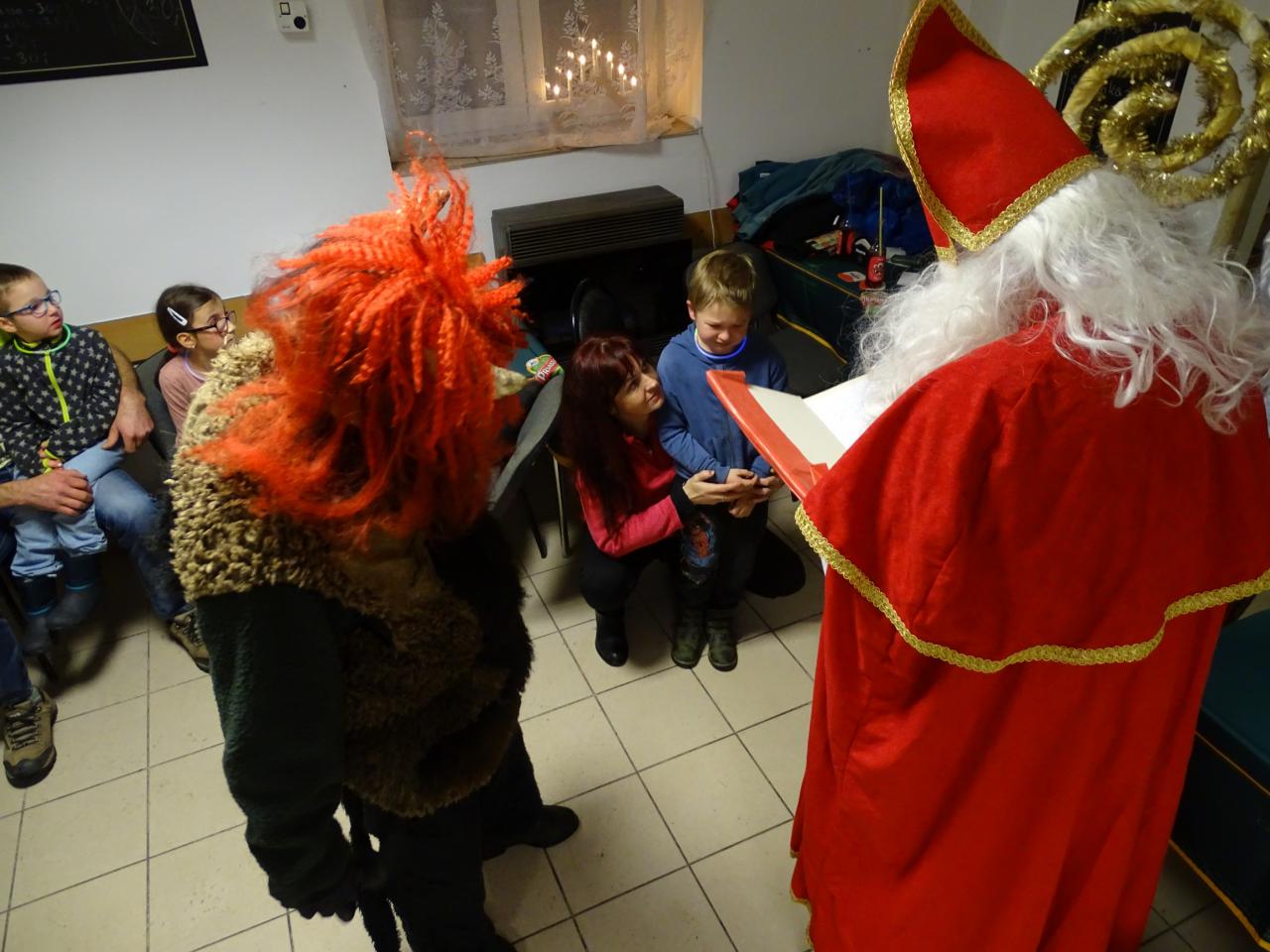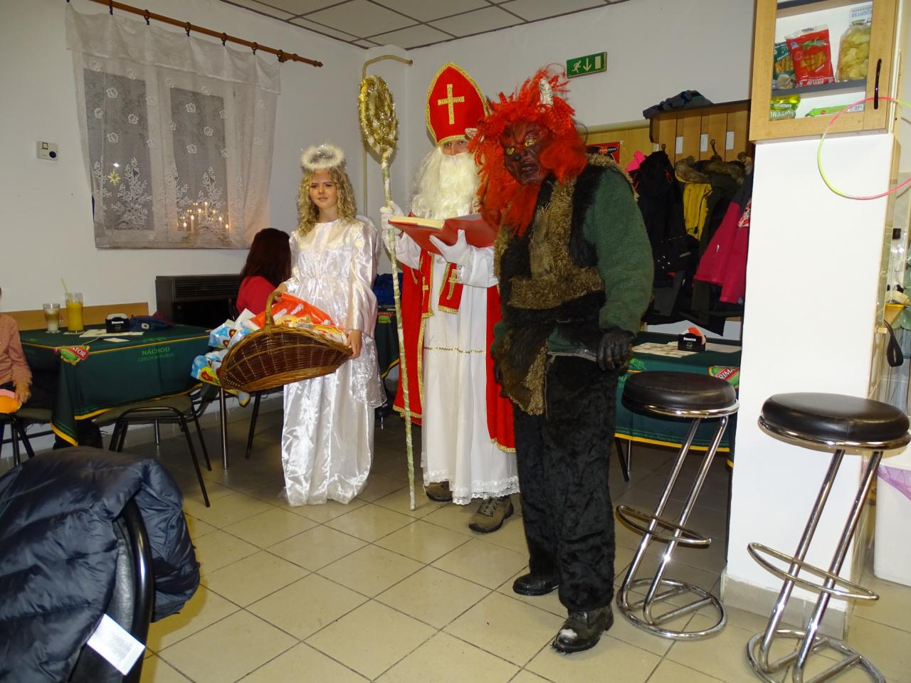 Letos jsme se sešli v komorním prostředí obecní klubovny. Mikulášská družina dorazila včas i s dárečky.